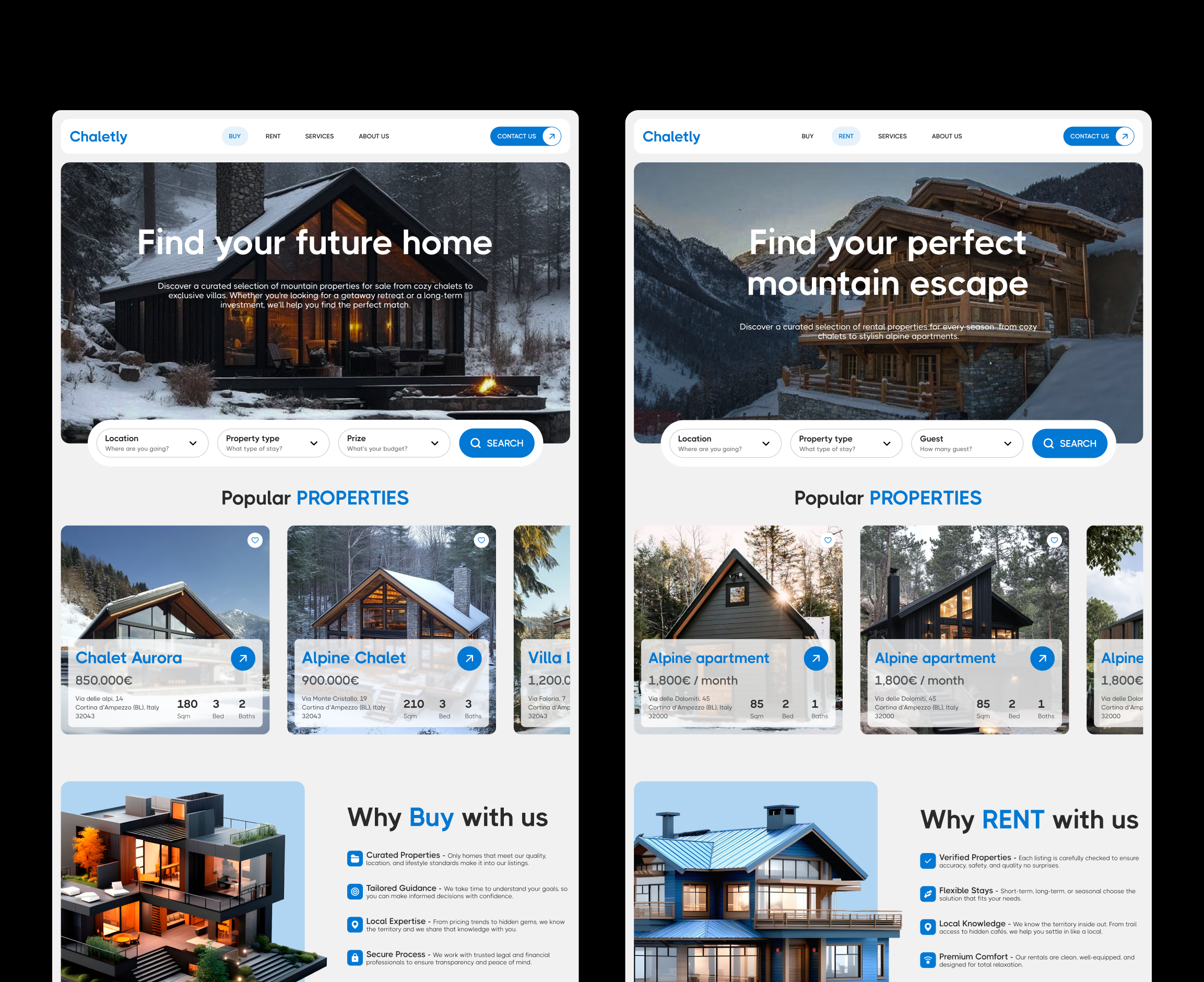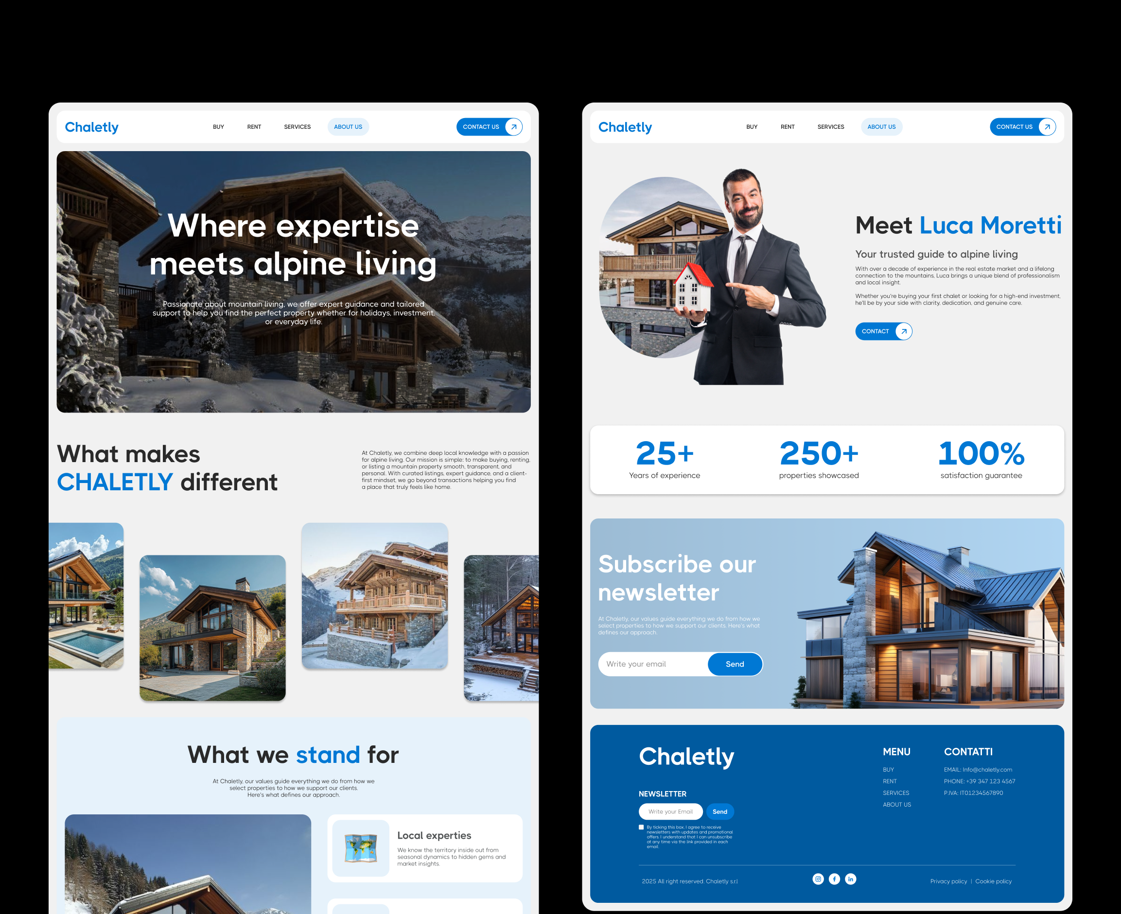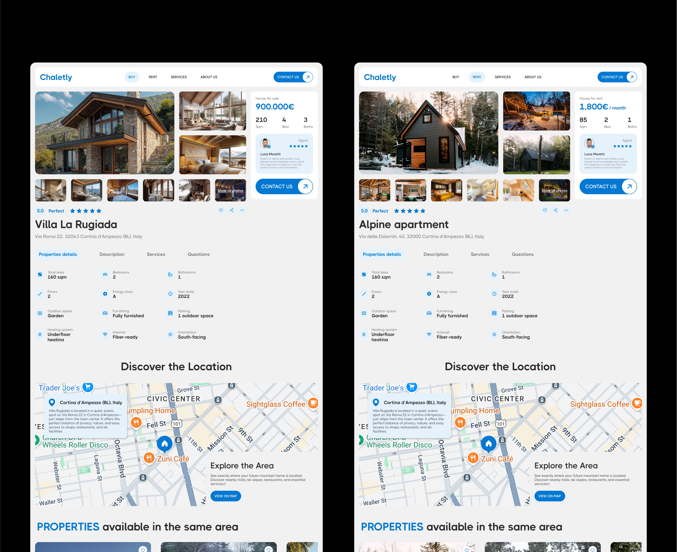 Explore Alpine, a real estate website template designed for showcasing mountain properties for sale or rent. Includes home, listings, property details, about, and contact pages. Features a clean layout with shades of blue and white, combining a professional tone with a fresh, modern aesthetic ideal for real estate agencies and property owners in alpine or high-end locations.